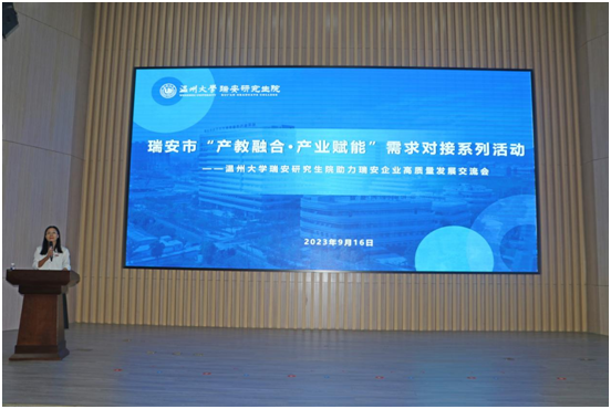 9月16日上午,瑞安市“产教融合·产业赋能”需求对接系列活动暨温州大学瑞安研究生院助力瑞安高质量发展交流会在东新科创园一期举行,充分发挥高校与企业的双方优势,强化校企精准对接,构建产教深度融合,助力瑞安企业高质量发展。