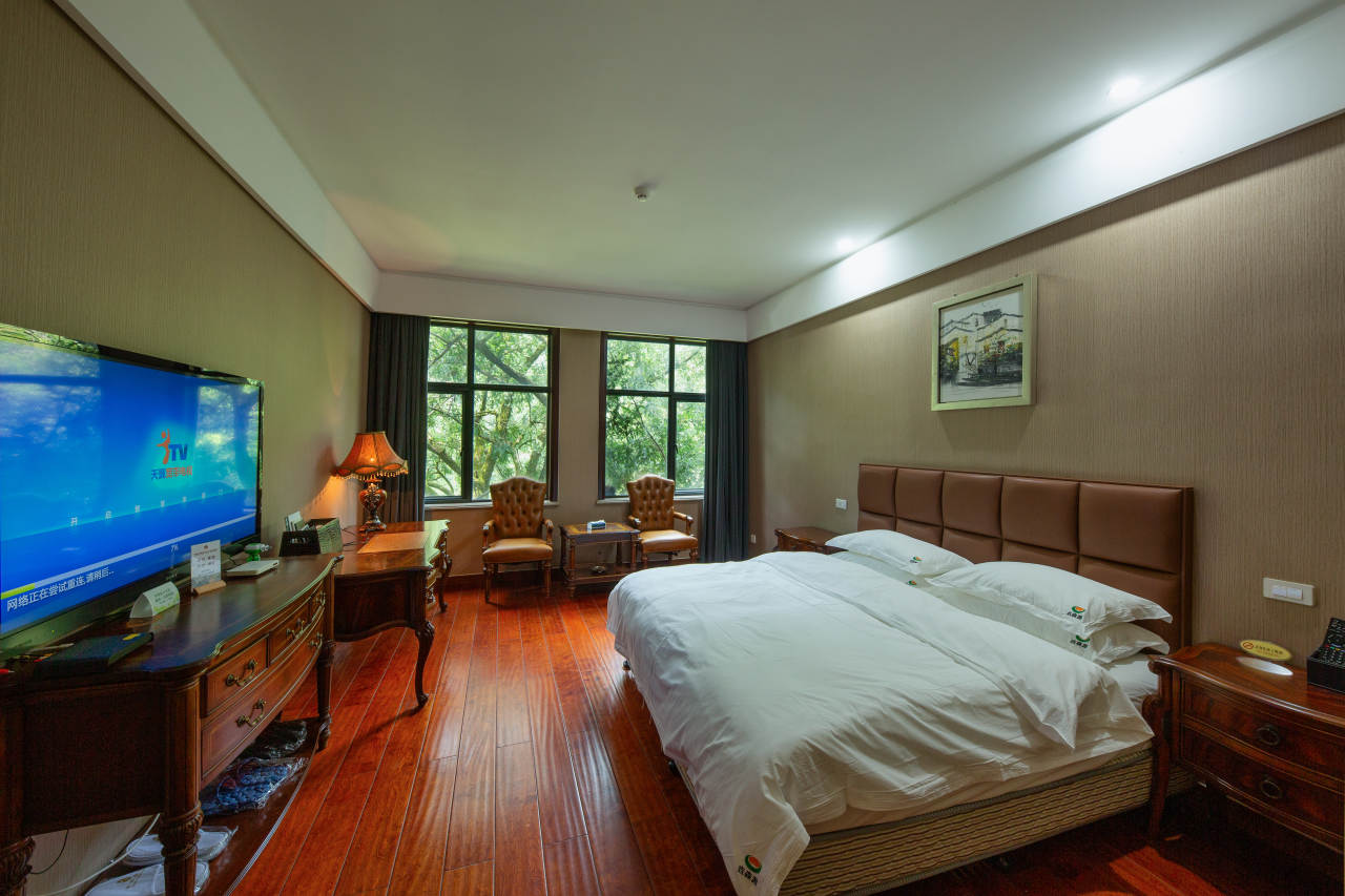 另外,这里还有一株“镇园之宝”——榧王树。据说这棵树已有1300多岁,是我国迄今发现的最大香榧树!榧王树高18米,树围最粗处达到了9.23米,树冠覆盖面积达0.85亩,可同时容纳100多人在下面纳凉。玩了一天,就近在诸暨香榧国家级森林公园度假村休息一晚,也是不错的选择!小编又出来给大家放福利了!半价房票、免费香榧鸡,实在太实惠了!