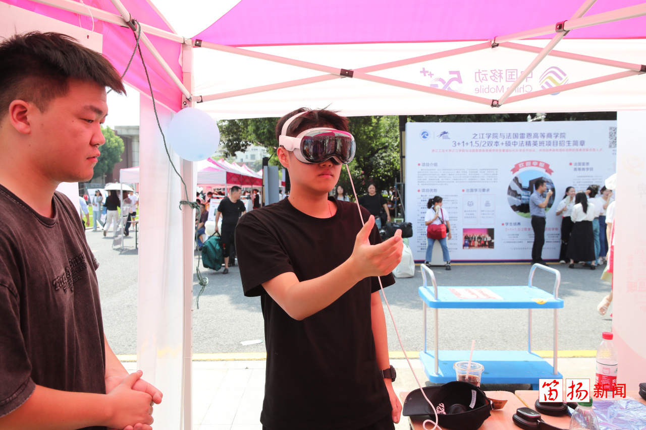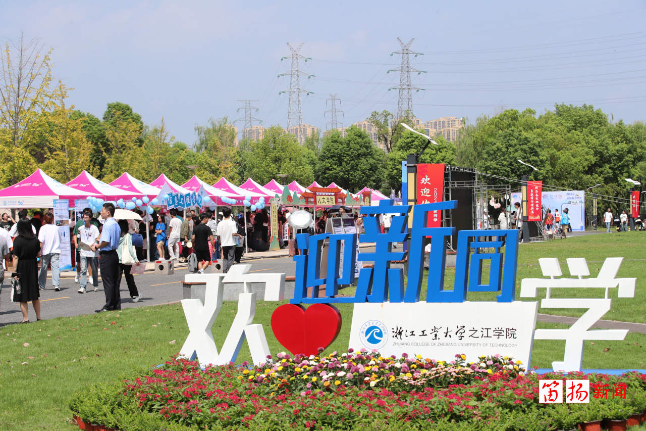 “同学,你是哪个学院的?”“商学院的新生们,请到这里集合......”在迎新现场,浙江工业大学之江学院9个学院结合专业特色,推出迎新活动,如商学院推出显眼包打卡、人文学院的非遗漆扇体验、信息工程学院的AI体验、机械学院的机器人展示、旅游学院宋韵国风小品等,建筑学院和设计学院更是将迎新棚装扮成徽派建筑、运动巴士的模样,给新生们带来满满的开学仪式感。