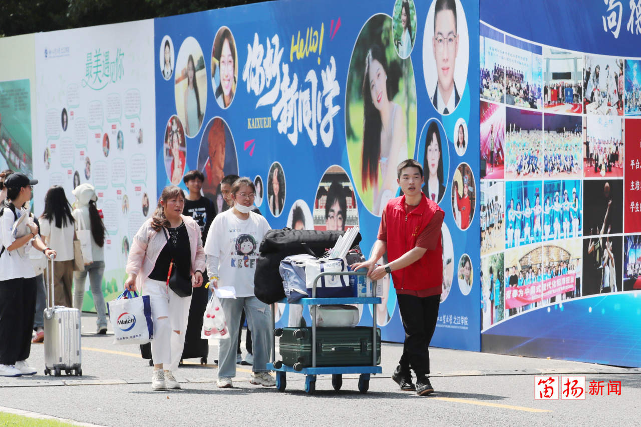 学校配备了观光电瓶车帮忙接送学生、家长及运送行李,还准备了一些防暑降温的茶饮、湿巾。“针对经济条件较为困难的学生,我们开通了绿色通道,可以帮助他们办理助学贷款、政策咨询,以及一份‘爱心大礼包’,里面有一些住宿的生活用品,让他们能够感受到学校对他们生活上和学习上的关怀。”浙江工业大学之江学院学生工作部副部长章佳萍说。