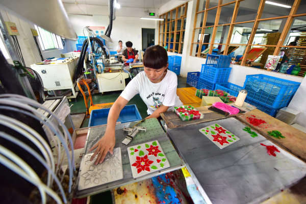 据了解,双明圣诞礼品有限公司目前遇到“场地小、工人难招”的问题。为了解决这个难题,王连明把产品发给周边村民来做。“我们的产品比较简单,对加工技术要求比较低,而周边农村剩余劳动力比较多,把产品分给他们来做,是完全没有问题的。”王连明说,把产品发给周边村民来做,成本比招工人来厂里做工要低一些,同时这样还可以带动周边村民增收致富。