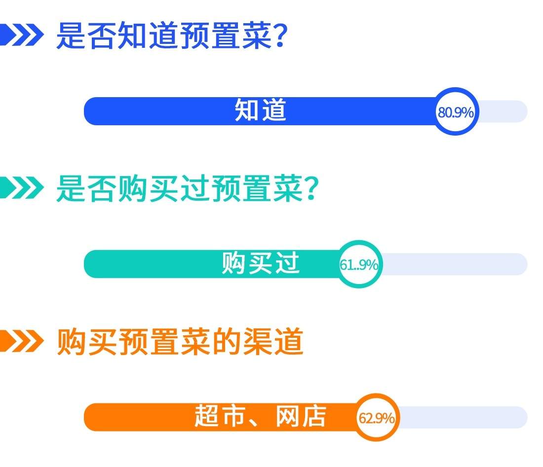 调查显示,80.9%的消费者“知道预制菜”,但在“哪些是预制菜”一题中,不足10%的消费者选择准确。这说明预制菜概念已经普及,但消费者对“预制菜”的认识还不全面,需要加大预制菜的宣传力度。