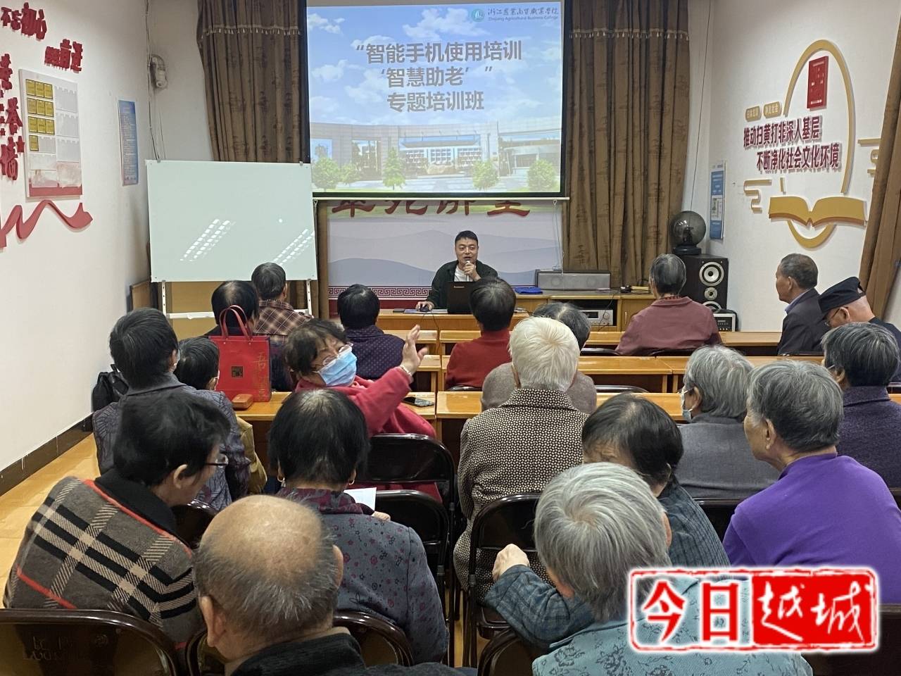 为帮助社区老年居民掌握智能手机的使用方法,增加老年人日常生活的便利性,城南街道翠苑社区联合浙江农业商贸职业学院开展“智慧助老”智能手机培训。