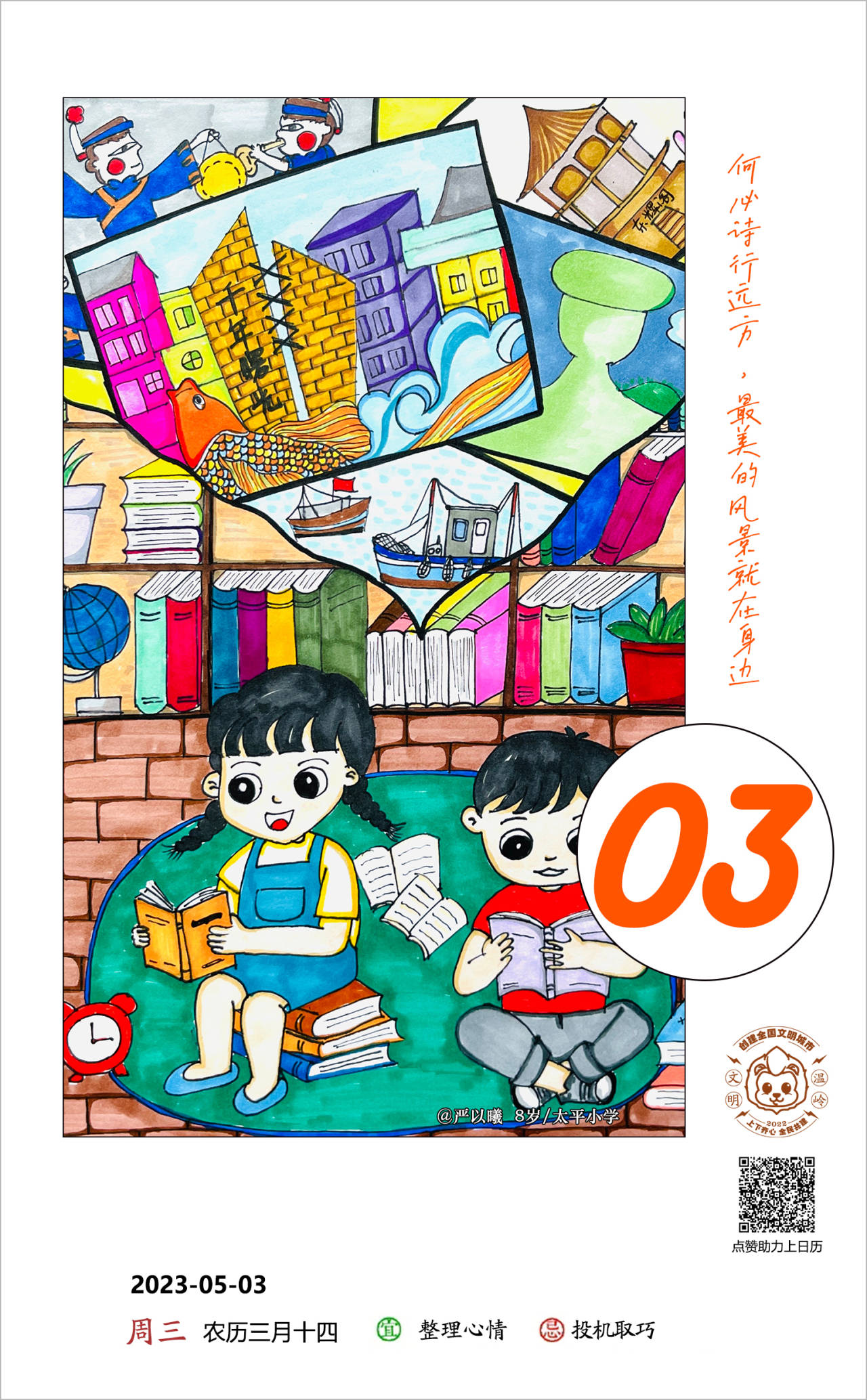 人人共建,天天美丽。【文明日历】向您征集绘画、书法作品。奖励办法:学生组30元/张,周点赞过1500,双倍奖励。另征集每日文明城市创建励志小短句,录用奖励10元/条。