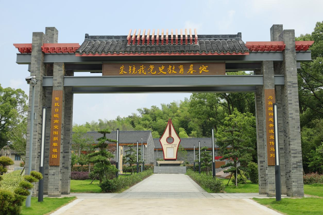 背靠巍峨的金峨山,有一个风光秀丽的小村子。这是朱镜我的故乡金峨村,以其名字来命名的朱镜我党史教育基地传承着革命先烈的红色精神,为乡村振兴发展注入不竭的动力。基地以“堇山点朱、心如明镜、我将无我,为党为民”为核心关键词,主要分为入口总体区、主题纪念展览区、红色教育感悟区、主题纪念拓展区四大区域,包括一馆、一堂、一亭、一广场、一游园,占地面积约6220平方米。步入基地映入眼帘的就是一块形似钢笔笔尖,又似锋利刀刃的纪念碑雕像,上面印刻的是朱镜我作词的《我们是战无不胜的铁军》一歌。