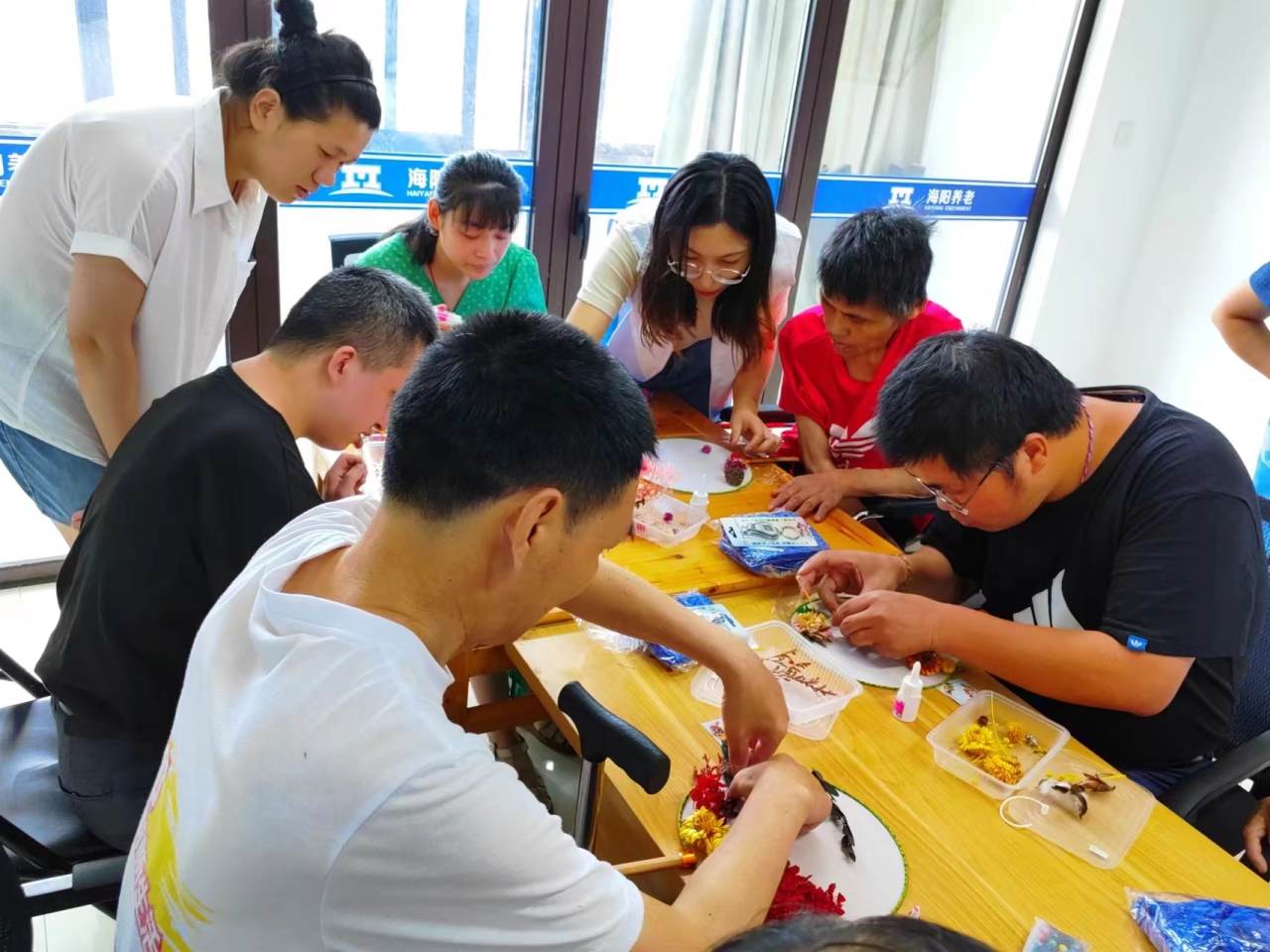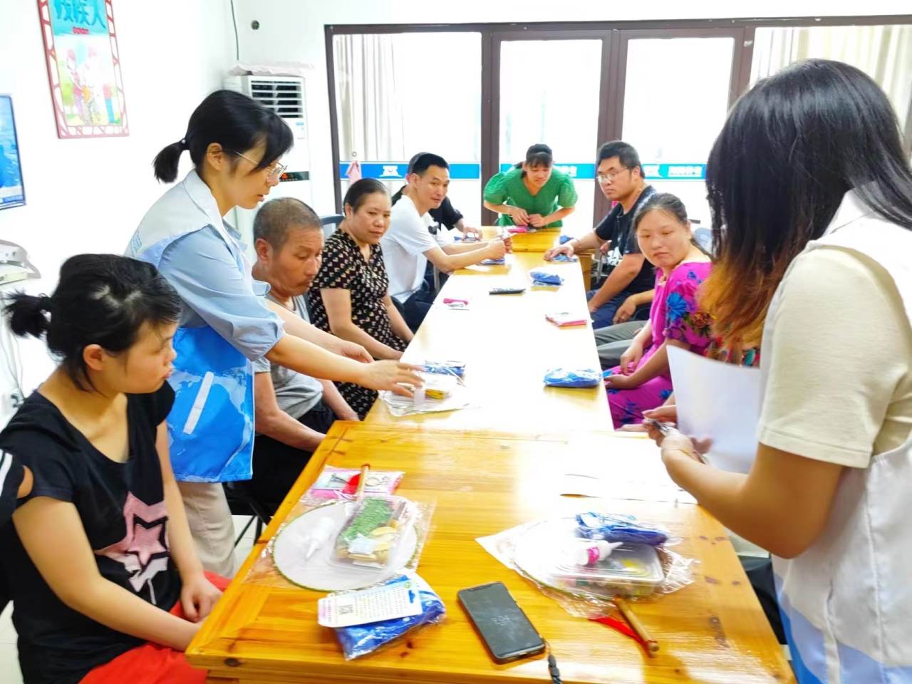 7月7日,漓渚镇社工站、社会组织服务中心工作人员来到残疾人之家,开展小暑-干花团扇送清凉残疾人小组活动,为他们送去清凉。