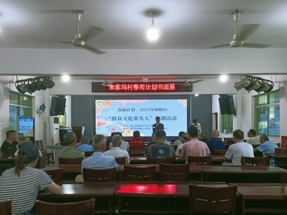 7月8日,由柯桥区文化馆主办的“群众文化带头人”书法培训活动,在朱家坞村文化礼堂进行。柯桥区书协副主席、中国书协会员朱勇方老师结合自身学书体会,从学习书法的选贴、临帖、创作、欣赏等方面与20多名学员一起进行了交流和分享。