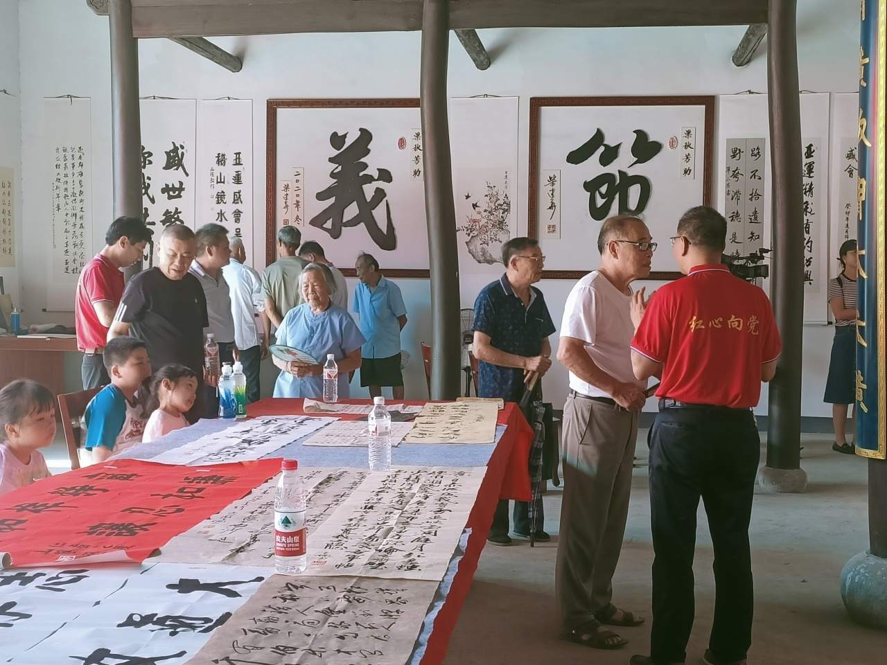 7月8日,“喜迎亚运 筑梦共富”农民书画展在朱家坞村柴家祠堂举办,此次展览展出的36幅书画作品,以山乡村民独具乡土气息的艺术表现形式,展示了当代农民“当好东道主、助力亚运会”的新时代形象。
