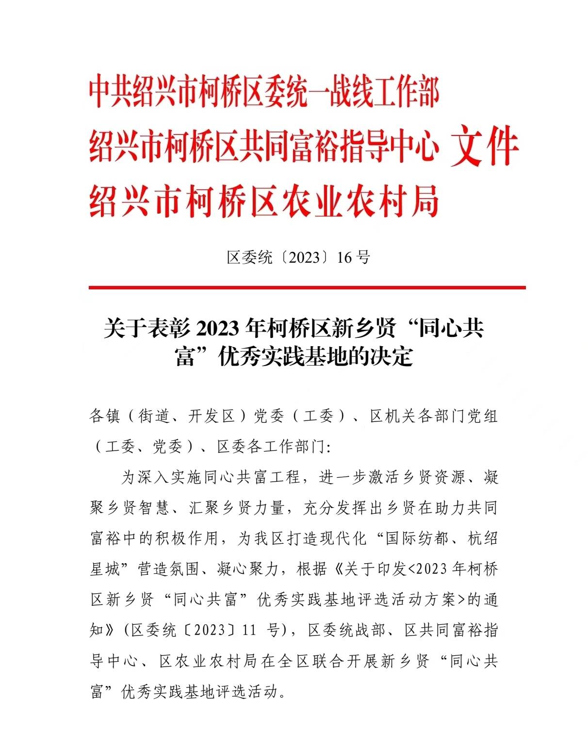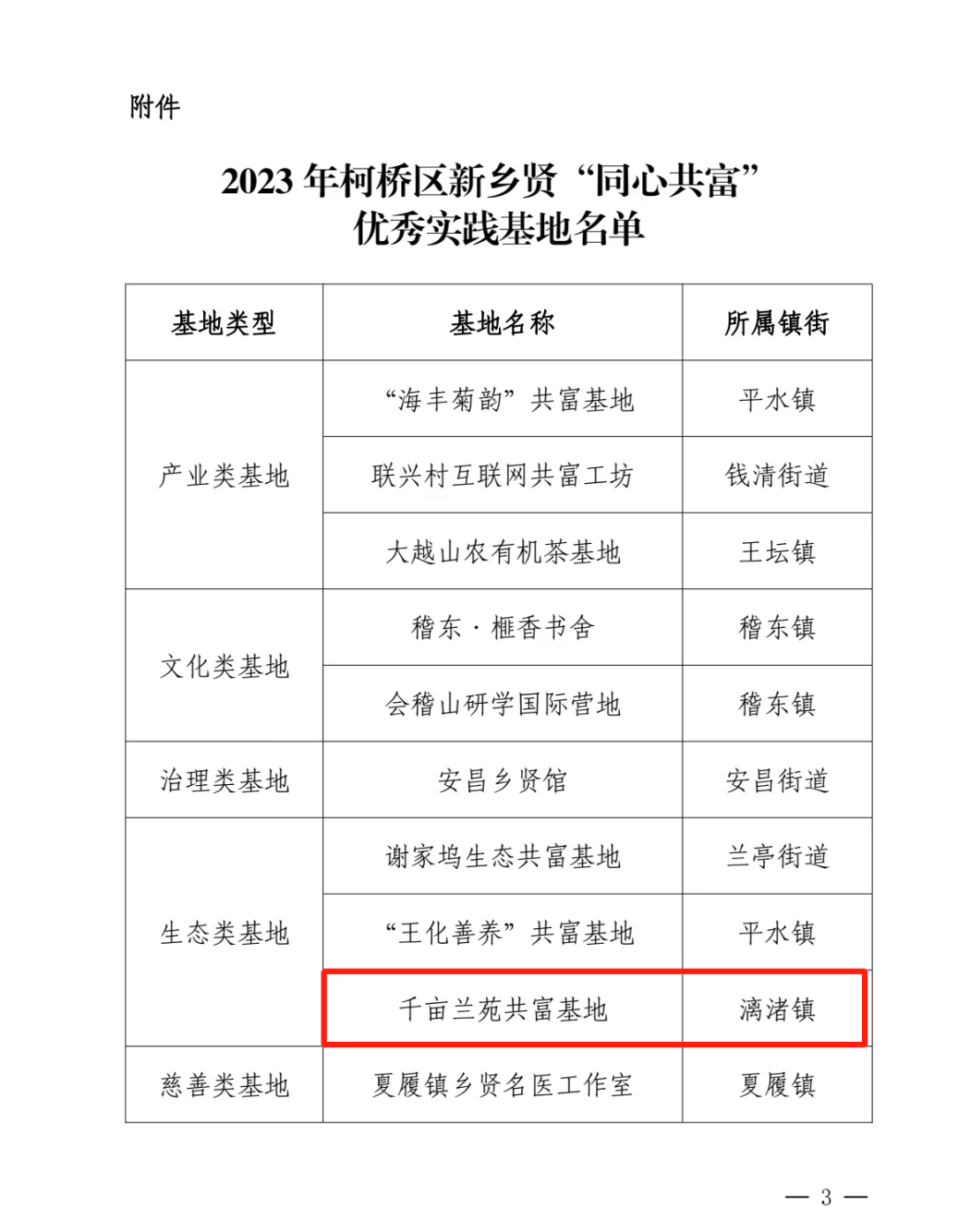 漓渚镇千亩兰苑共富基地荣获2023年柯桥区新乡贤“同心共富”生态类优秀实践基地。