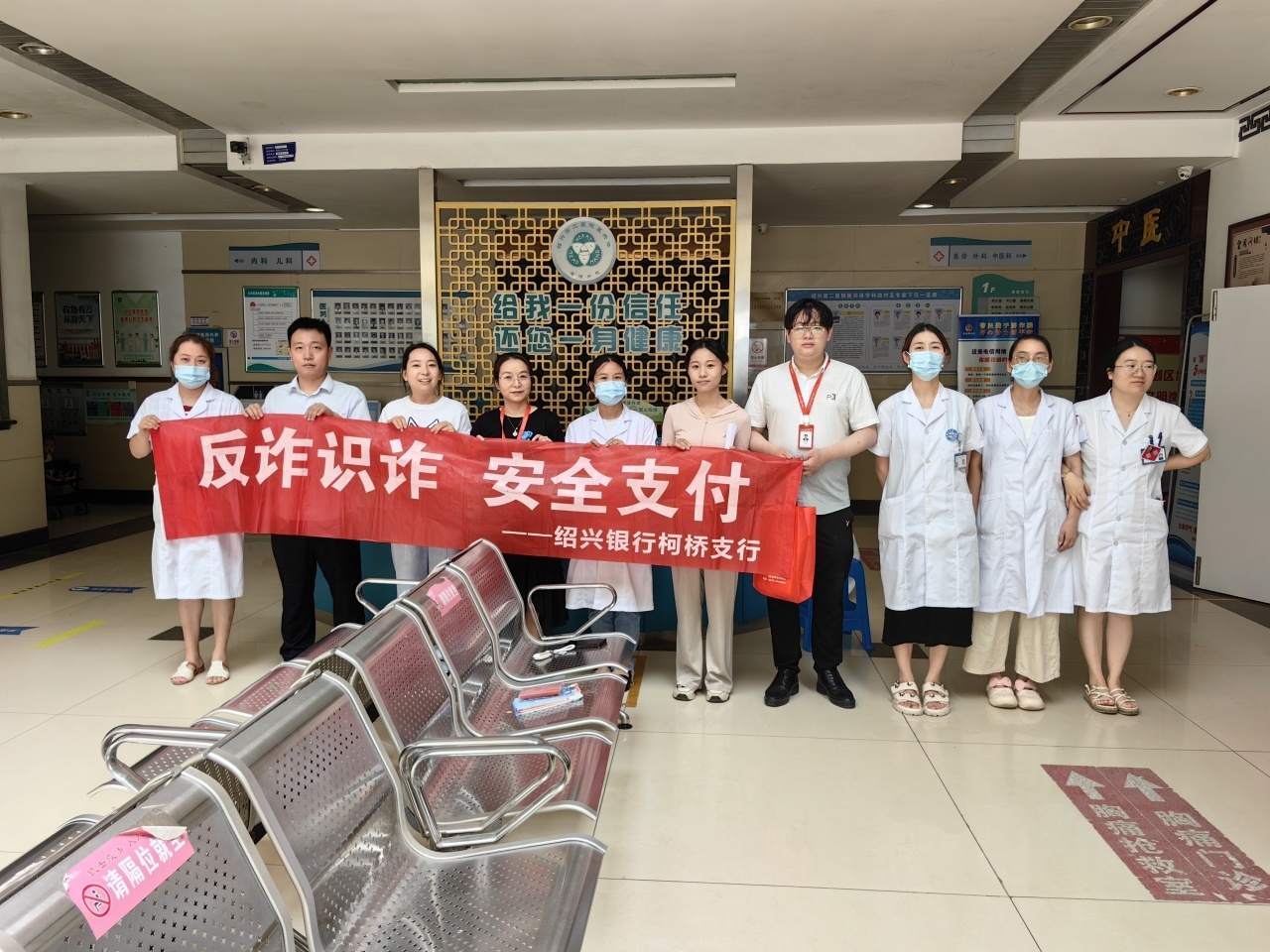 7月6日,绍兴银行漓渚支行联合漓渚镇文明实践所走进绍兴第二医院漓渚分院开展反诈识诈 安全支付宣传活动。