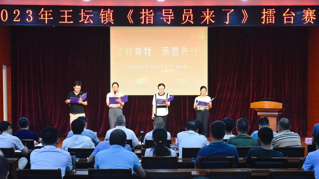 为深入贯彻落实习近平总书记对驻村指导员工作的重要批示精神,进一步展示全体驻村干部履职尽责、奉献群众的工作风采和精神面貌,8月7日下午,王坛镇开展“驻村有我 示范先行”《指导员来了》擂台赛。20名驻村(社)指导员结合实际,以演讲、小品、故事会等形式展示了驻村工作和丰富的驻村经验。王坛镇全体班子成员、机关干部现场观摩。