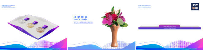 8月24日,杭州亚运会颁奖物资正式发布,包括颁奖花束、颁奖托盘及颁奖台。颁奖花束名为“硕果累累”,由花材和花器两部分组成,其中花器由东阳木雕制作而成。