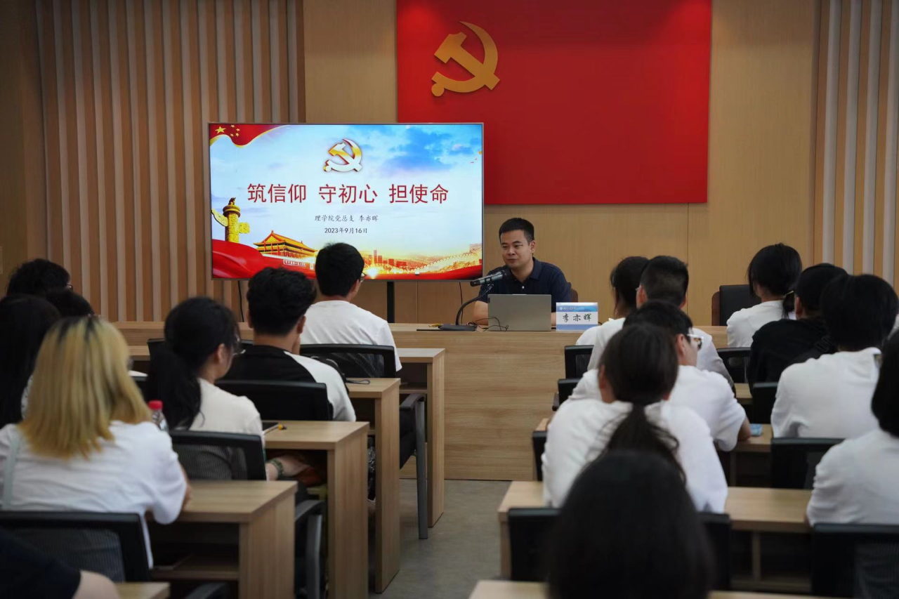 理学院党总支副书记李亦晖以“筑信仰 守初心 担使命”为主题,从“对中国共产党的认识”、“理学院党建情况介绍”、“如何以实际行动争取早日入党”以及“理学院入党流程和规范”四个方面做了详细介绍。他强调,要坚定入党初心,要积极向优秀的榜样学习,要努力发挥好先锋模范带头作用,要以实际行动和优异成绩争取早日加入党组织。