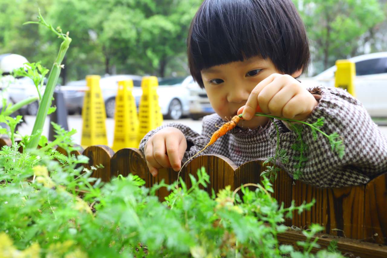 芽比托育园的小朋友在观察植物