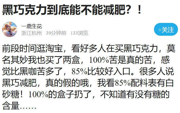 那么网友们对黑巧克力减肥,是怎么看的呢?让我们一起往下看。