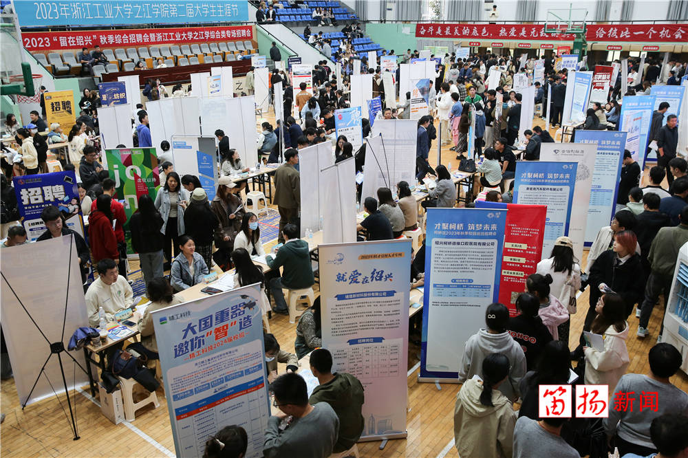 11月9日,浙江工业大学之江学院大学生在2023“留在绍兴”秋季综合招聘会上了解招聘信息,寻求心仪岗位。当日,浙江工业大学之江学院举行2023年“华彩人生 职涯启航”第二届生涯节系列活动。此次活动内容涵盖大学生首届生涯环游荟、2023“留在绍兴”秋季综合招聘会、导师咨询会、“之江甄选”院长书记直播带岗、创业集市等。其中,2023“留在绍兴”秋季综合招聘会共邀请参会企业200余家,涵盖商贸金融、机械智造、信息科技、人文教育、建筑设计、酒店旅游等行业,为大学生们提供6000余个就业岗位。