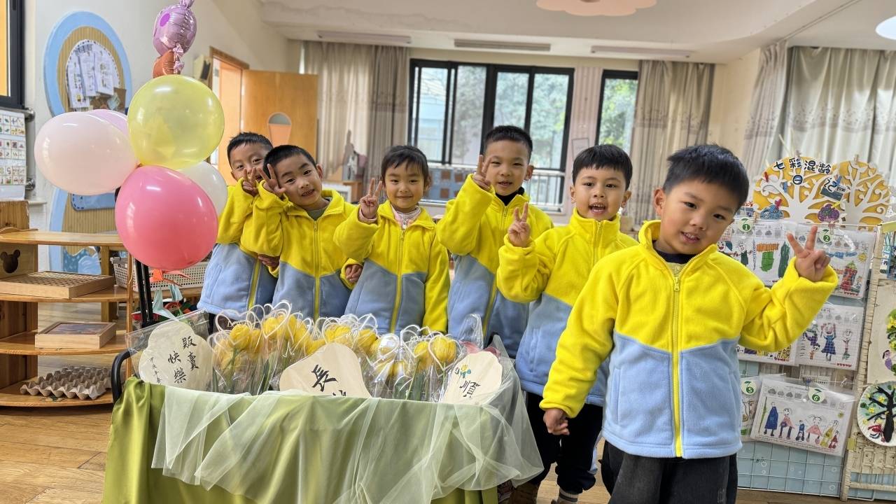 春光明媚,花开正好,柯桥大坂风情幼儿园中五、大五班的孩子共同策划准备的社会实践活动在之江学院开展;孩子们将自己亲手种植的郁金香进行采摘、包装、定价,还设计了一些营销方式,例如买花送手工小挂件、练甜甜话吆喝词、唱歌表演等等,一亮相就吸引来了许多热心的大学生哥哥姐姐扫码购买。