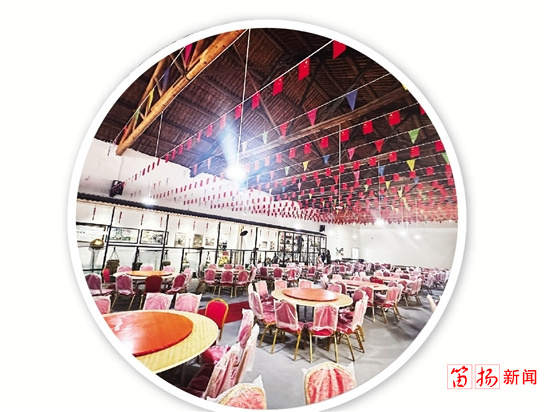 满墙的迷彩绿、军队的标语、飘扬的五星红旗……因为有着退伍军人的情怀,宋建敏设计的文化礼堂满满的正气。近1000平方米的文化礼堂内宽敞明亮,舞台上,不仅有先进的音响设备,还有整套影院系统。每天晚上,村民相约来到村文化礼堂,一起唱歌、跳舞。文化礼堂同时还是家宴中心,桌椅、空调、厨房样样齐全,可容纳近30桌宴席。今年2月,这里承办了村里的第一场喜事。“这次孙女的喜宴一共摆了26桌,有了这个文化礼堂,费用节省了1万5千元。”村民宋大爷说。