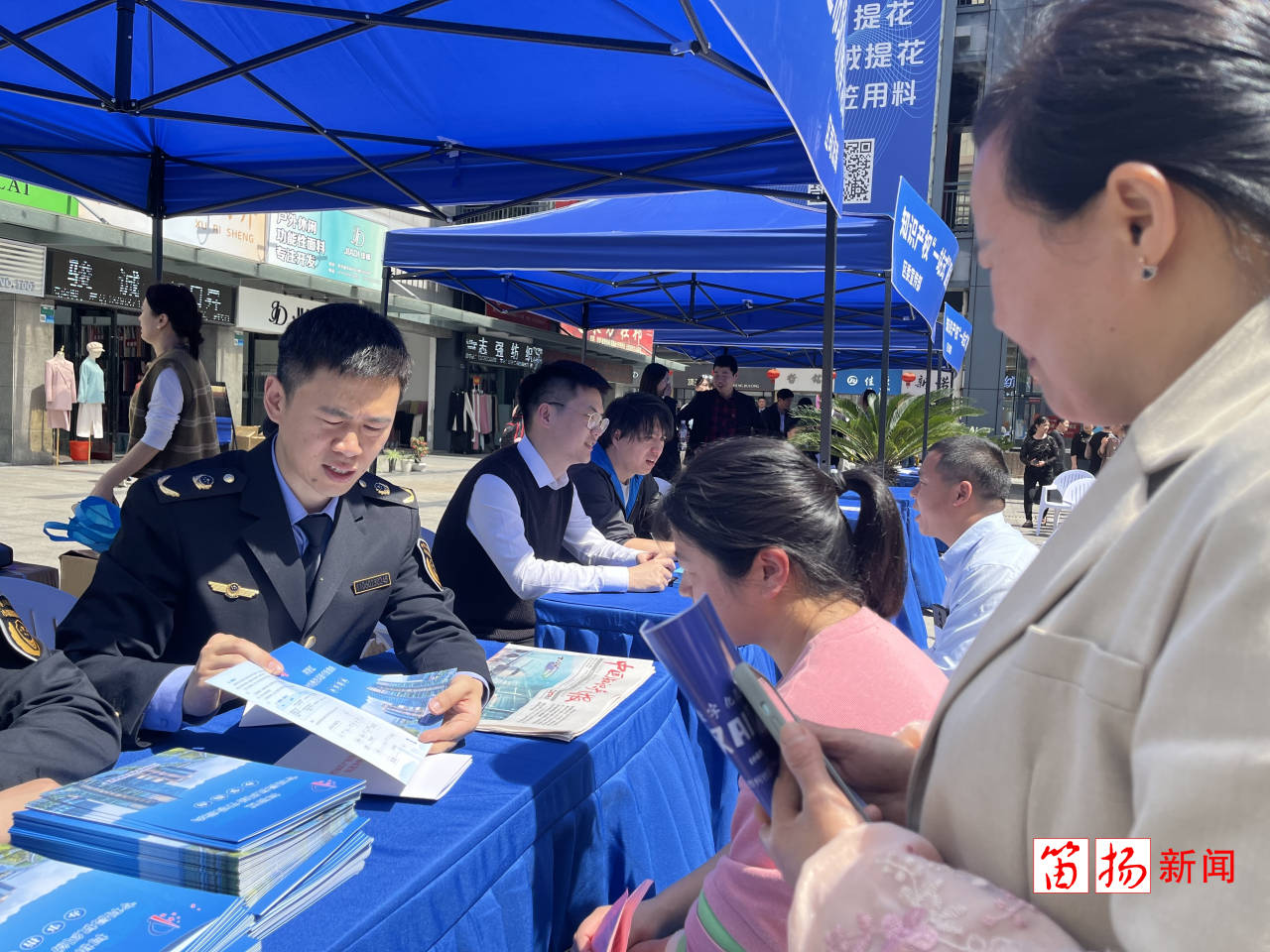 在中国轻纺城知识产权广场,来自区市场监管局(知识产权局)、区委宣传部、检察院、法院、司法、文广旅游、知产保护中心等多个部门、服务机构的工作人员现场围绕专利、商标、版权、地理标志等重要着力点,通过悬挂横幅、展板展示、设立现场咨询台、发放宣传资料等形式开展宣传活动,进一步普及知识产权知识,彰显知识产权在加速培育新质生产力、助力高质量发展方面的重要作用,全力优化营商环境。