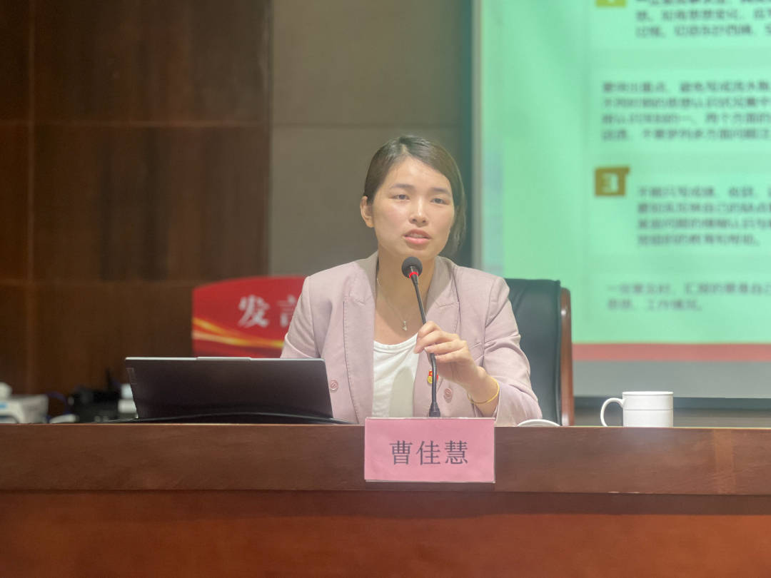 区委组织员曹佳慧讲述《在党员发展中加强理想信念》,通过介绍党员发展25个环节,强调各环节注意事项,引导入党积极分子明晰前行方向、坚定理想信念。